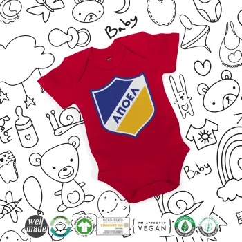 FC ΑΠΟΕΛ Λευκωσίας, Βρεφικό φορμάκι μωρού, ΚΟΚΚΙΝΟ, 100% Organic Cotton, κοντομάνικο