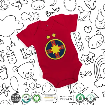 FC Steaua Bucuresti (FCSB), Βρεφικό φορμάκι μωρού, ΚΟΚΚΙΝΟ, 100% Organic Cotton, κοντομάνικο