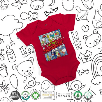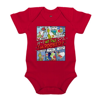 My Day Grinch, Βρεφικό φορμάκι μωρού, ΚΟΚΚΙΝΟ, 100% Organic Cotton, κοντομάνικο