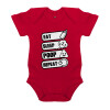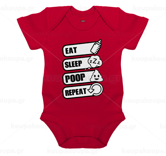 Eat, Sleep, Poop, Repeat, Βρεφικό φορμάκι μωρού, ΚΟΚΚΙΝΟ, 100% Organic Cotton, κοντομάνικο