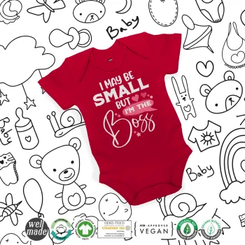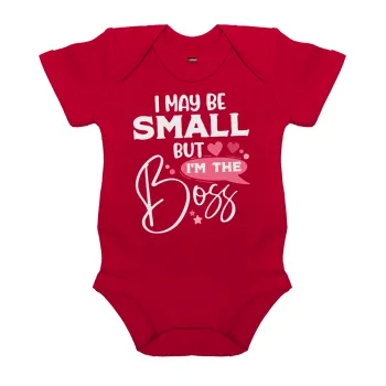 I may be small but I'm the boss, Βρεφικό φορμάκι μωρού, ΚΟΚΚΙΝΟ, 100% Organic Cotton, κοντομάνικο