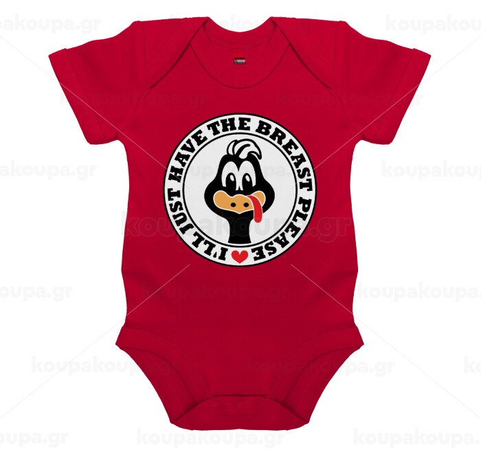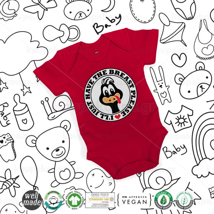 I'll Just Have The Breast Please, Βρεφικό φορμάκι μωρού, ΚΟΚΚΙΝΟ, 100% Organic Cotton, κοντομάνικο