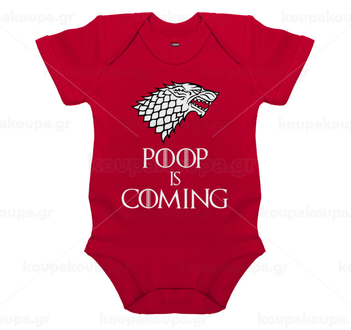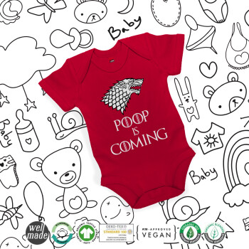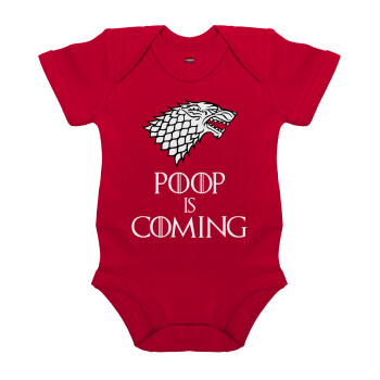 POOP Is Coming, Βρεφικό φορμάκι μωρού, ΚΟΚΚΙΝΟ, 100% Organic Cotton, κοντομάνικο