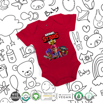 Brawl Stars Blue, Βρεφικό φορμάκι μωρού, ΚΟΚΚΙΝΟ, 100% Organic Cotton, κοντομάνικο