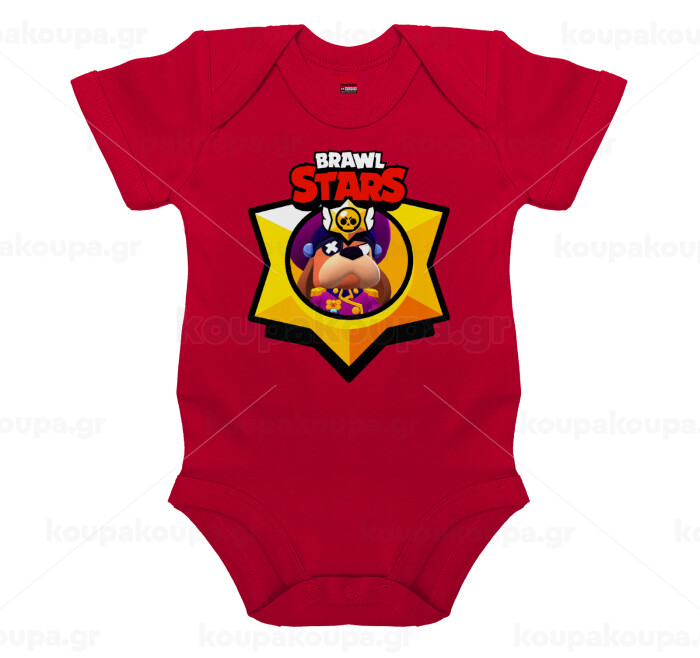Brawl Stars Ruffs, Βρεφικό φορμάκι μωρού, ΚΟΚΚΙΝΟ, 100% Organic Cotton, κοντομάνικο