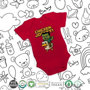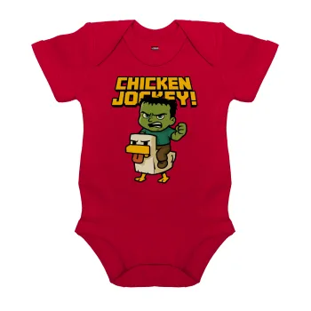 Chicken Jockey, Βρεφικό φορμάκι μωρού, ΚΟΚΚΙΝΟ, 100% Organic Cotton, κοντομάνικο