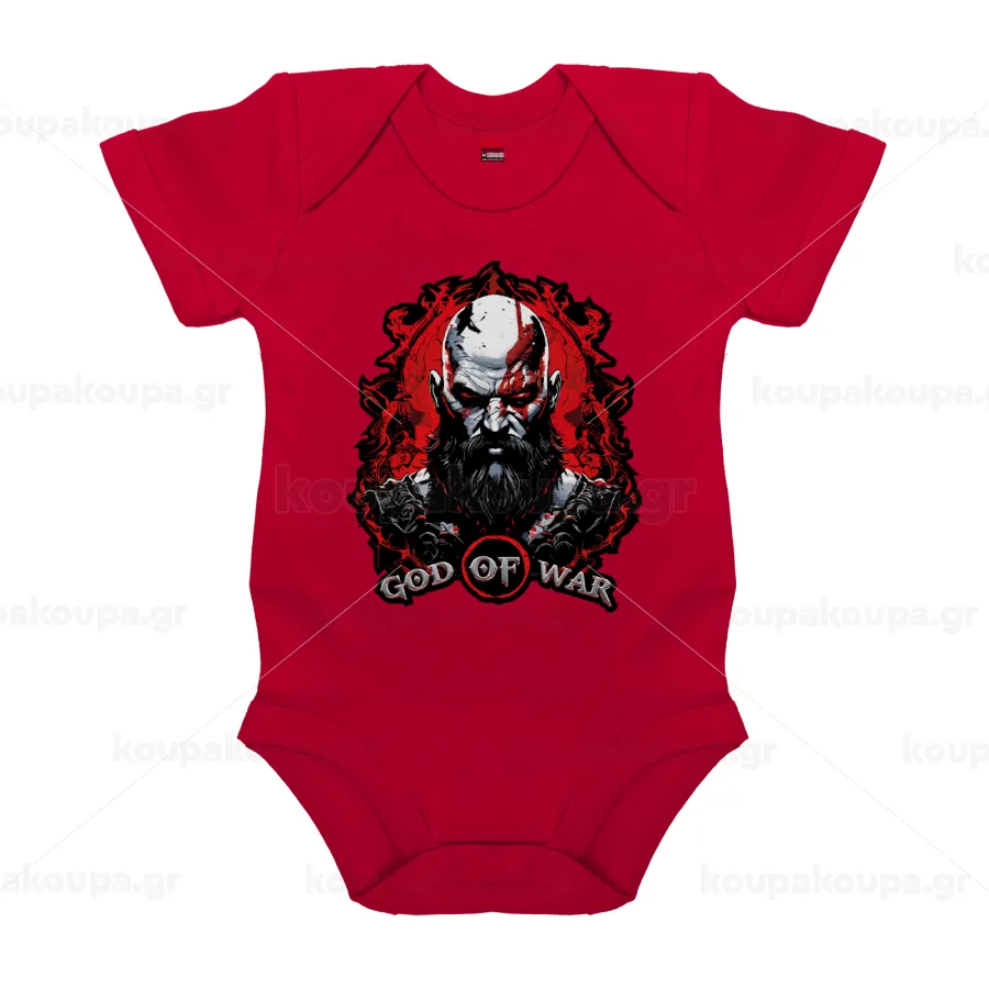God of war, Βρεφικό φορμάκι μωρού, ΚΟΚΚΙΝΟ, 100% Organic Cotton, κοντομάνικο