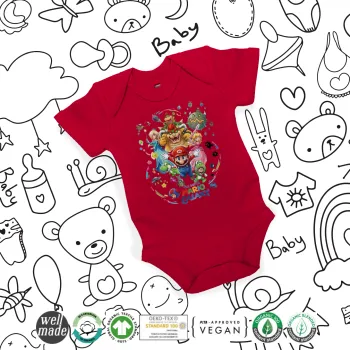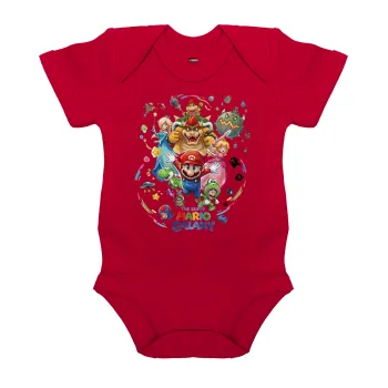 Mario Galaxy, Βρεφικό φορμάκι μωρού, ΚΟΚΚΙΝΟ, 100% Organic Cotton, κοντομάνικο