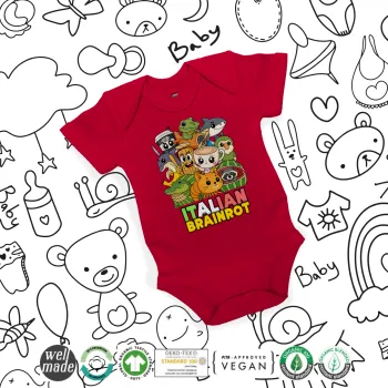 Italian Brainrot friends, Βρεφικό φορμάκι μωρού, ΚΟΚΚΙΝΟ, 100% Organic Cotton, κοντομάνικο