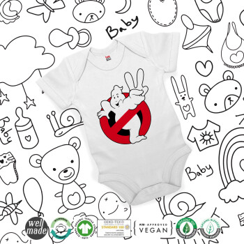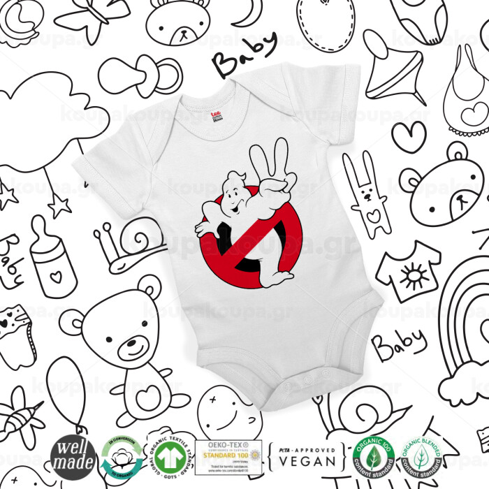Ghostbusters, Βρεφικό φορμάκι μωρού, 0-24 μηνών, ΛΕΥΚΟ, 100% Organic Cotton, κοντομάνικο