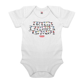 Stranger Things ABC, Βρεφικό φορμάκι μωρού, 0-24 μηνών, ΛΕΥΚΟ, 100% Organic Cotton, κοντομάνικο