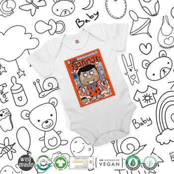 The flintstones, Βρεφικό φορμάκι μωρού, 0-24 μηνών, ΛΕΥΚΟ, 100% Organic Cotton, κοντομάνικο