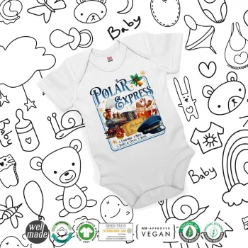 The Polar Express, Βρεφικό φορμάκι μωρού, 0-24 μηνών, ΛΕΥΚΟ, 100% Organic Cotton, κοντομάνικο