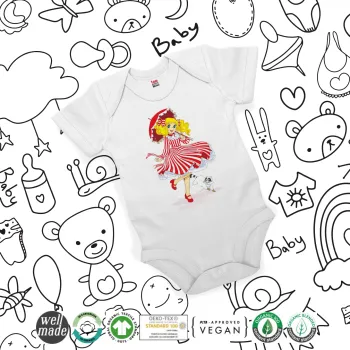 Candy, Βρεφικό φορμάκι μωρού, 0-24 μηνών, ΛΕΥΚΟ, 100% Organic Cotton, κοντομάνικο