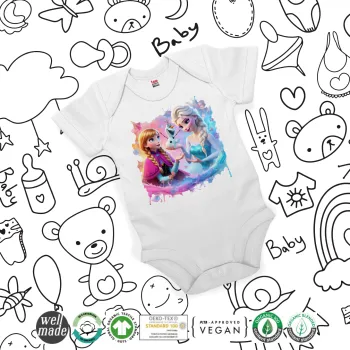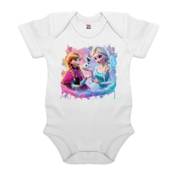 Έλσα & Άννα, Βρεφικό φορμάκι μωρού, 0-24 μηνών, ΛΕΥΚΟ, 100% Organic Cotton, κοντομάνικο