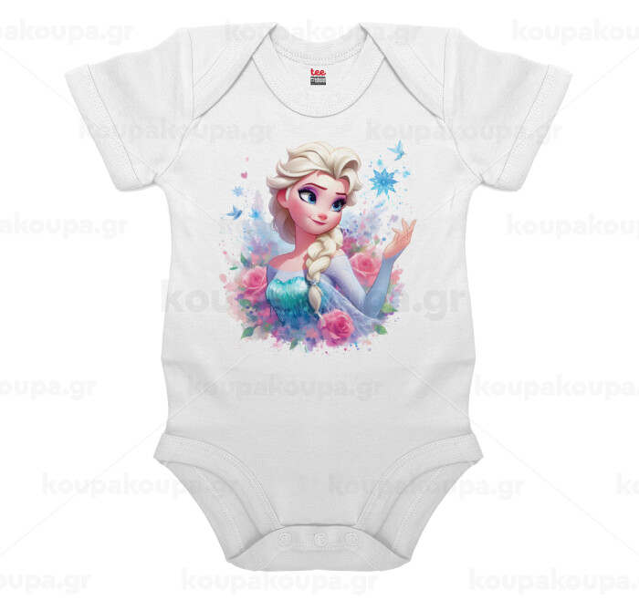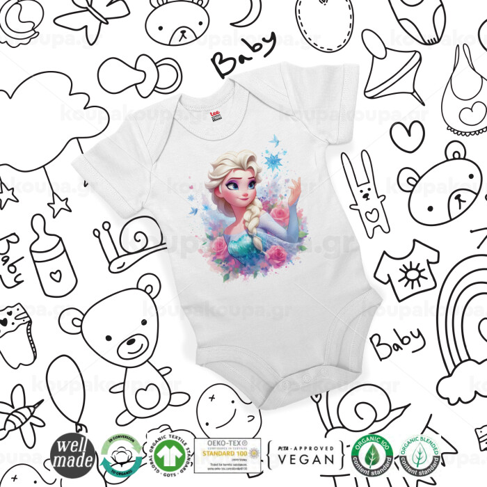 Elsa Princess, Βρεφικό φορμάκι μωρού, 0-24 μηνών, ΛΕΥΚΟ, 100% Organic Cotton, κοντομάνικο
