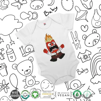 Inside Out θυμός, Βρεφικό φορμάκι μωρού, 0-24 μηνών, ΛΕΥΚΟ, 100% Organic Cotton, κοντομάνικο