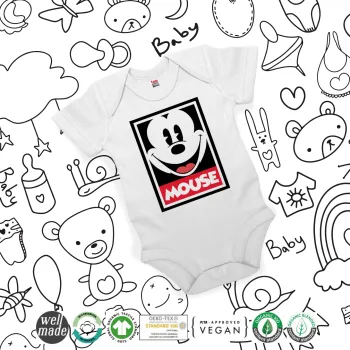 Μίκυ Μάους, Βρεφικό φορμάκι μωρού, 0-24 μηνών, ΛΕΥΚΟ, 100% Organic Cotton, κοντομάνικο