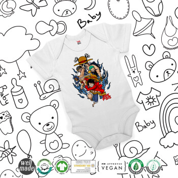 One Piece, Βρεφικό φορμάκι μωρού, 0-24 μηνών, ΛΕΥΚΟ, 100% Organic Cotton, κοντομάνικο