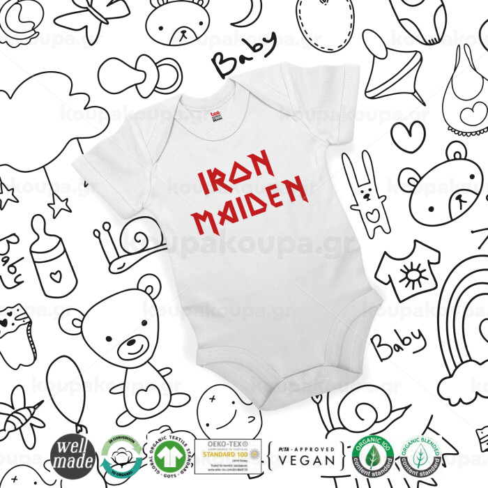 Iron maiden, Βρεφικό φορμάκι μωρού, 0-24 μηνών, ΛΕΥΚΟ, 100% Organic Cotton, κοντομάνικο