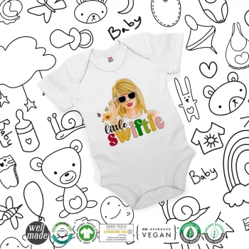 Little Swiftie, Βρεφικό φορμάκι μωρού, 0-24 μηνών, ΛΕΥΚΟ, 100% Organic Cotton, κοντομάνικο
