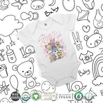 Stray Kids Pink, Βρεφικό φορμάκι μωρού, 0-24 μηνών, ΛΕΥΚΟ, 100% Organic Cotton, κοντομάνικο