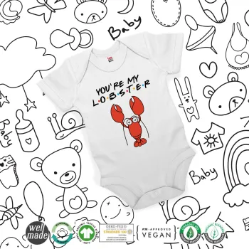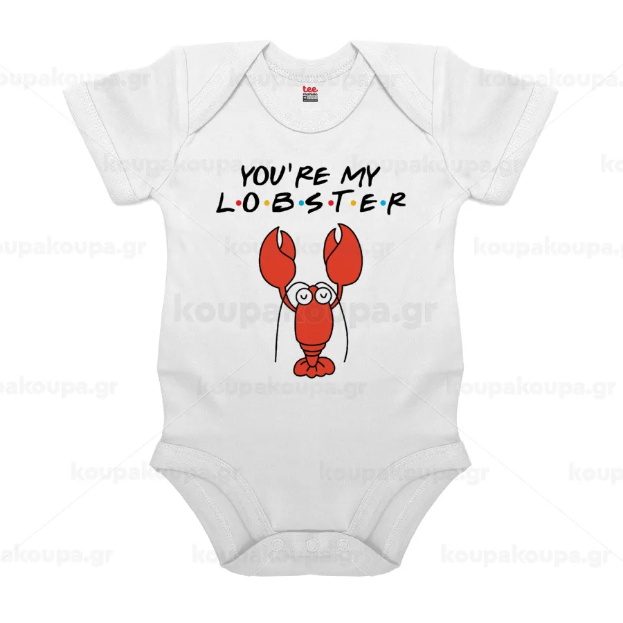 Friends you're my lobster, Βρεφικό φορμάκι μωρού, 0-24 μηνών, ΛΕΥΚΟ, 100% Organic Cotton, κοντομάνικο