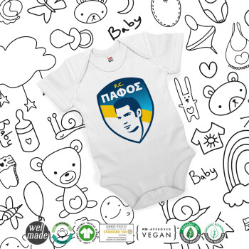 Πάφος FC, Βρεφικό φορμάκι μωρού, 0-24 μηνών, ΛΕΥΚΟ, 100% Organic Cotton, κοντομάνικο