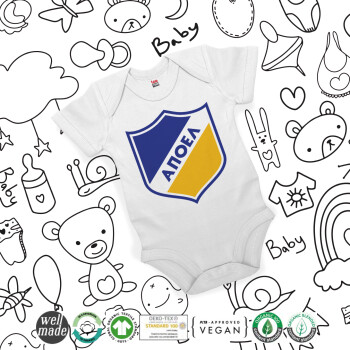 FC ΑΠΟΕΛ Λευκωσίας, Βρεφικό φορμάκι μωρού, 0-24 μηνών, ΛΕΥΚΟ, 100% Organic Cotton, κοντομάνικο