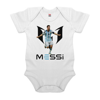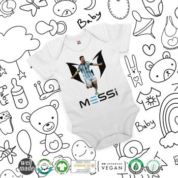 Λιονέλ Μέσι, Leo Messi, Βρεφικό φορμάκι μωρού, 0-24 μηνών, ΛΕΥΚΟ, 100% Organic Cotton, κοντομάνικο