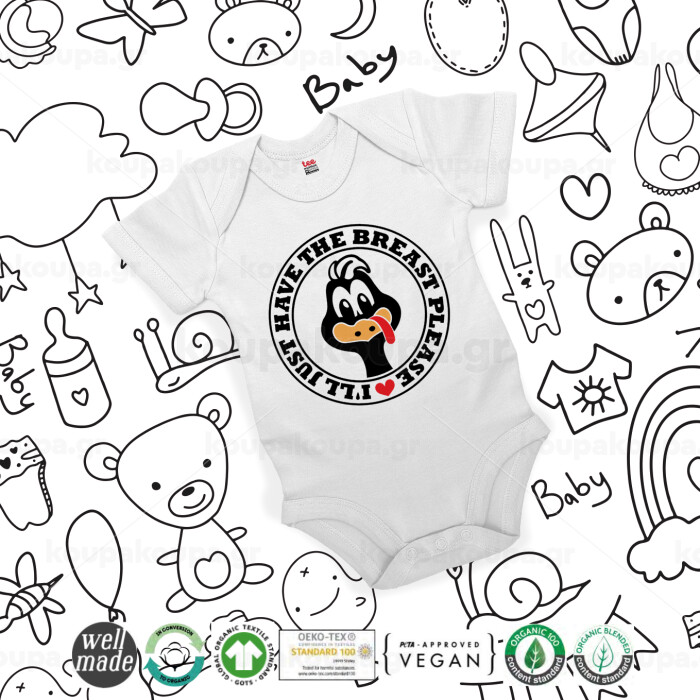 I'll Just Have The Breast Please, Βρεφικό φορμάκι μωρού, 0-24 μηνών, ΛΕΥΚΟ, 100% Organic Cotton, κοντομάνικο