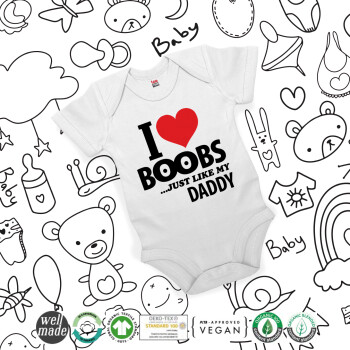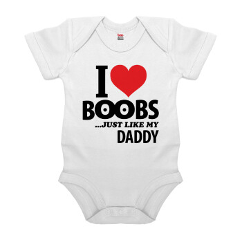 I Love boobs ...just like my daddy, Βρεφικό φορμάκι μωρού, 0-24 μηνών, ΛΕΥΚΟ, 100% Organic Cotton, κοντομάνικο