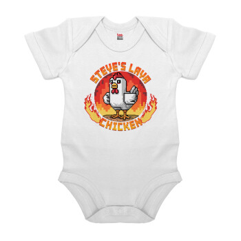 Steve's Lava Chicken, Βρεφικό φορμάκι μωρού, 0-24 μηνών, ΛΕΥΚΟ, 100% Organic Cotton, κοντομάνικο