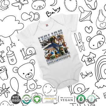 Italian Brainrot, Βρεφικό φορμάκι μωρού, 0-24 μηνών, ΛΕΥΚΟ, 100% Organic Cotton, κοντομάνικο