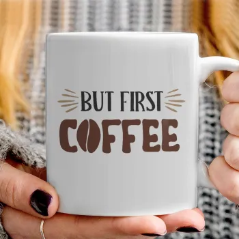 But first Coffee, Κούπα χρωματιστή μαύρη, κεραμική, 330ml