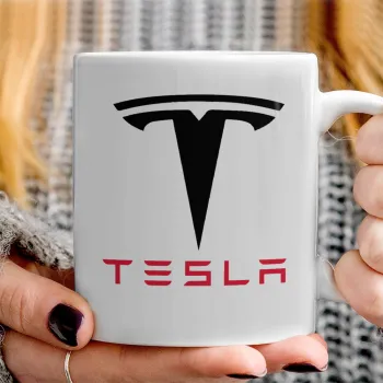 Tesla motors, Κούπα χρωματιστή μαύρη, κεραμική, 330ml