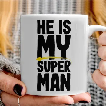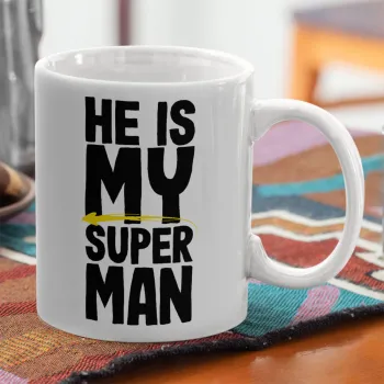 He is my superman, Κούπα χρωματιστή μαύρη, κεραμική, 330ml