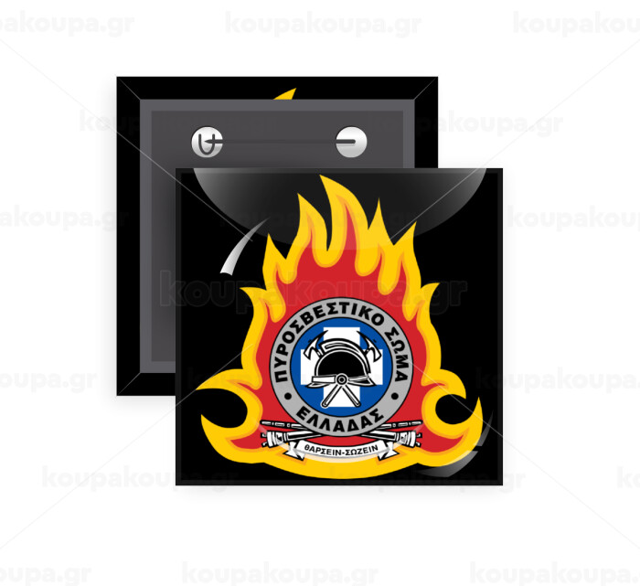 Πυροσβεστικό σώμα Ελλάδος σκούρο, Μπρελόκ Ξύλινο τετράγωνο MDF