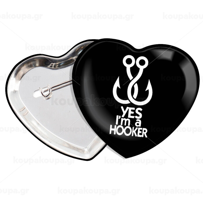 Yes i am Hooker, Κονκάρδα παραμάνα καρδιά (57x52mm)