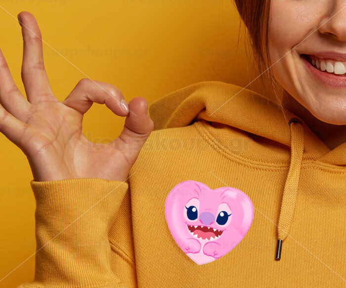 Lilo & Stitch Angel pink, Κονκάρδα παραμάνα καρδιά (57x52mm)