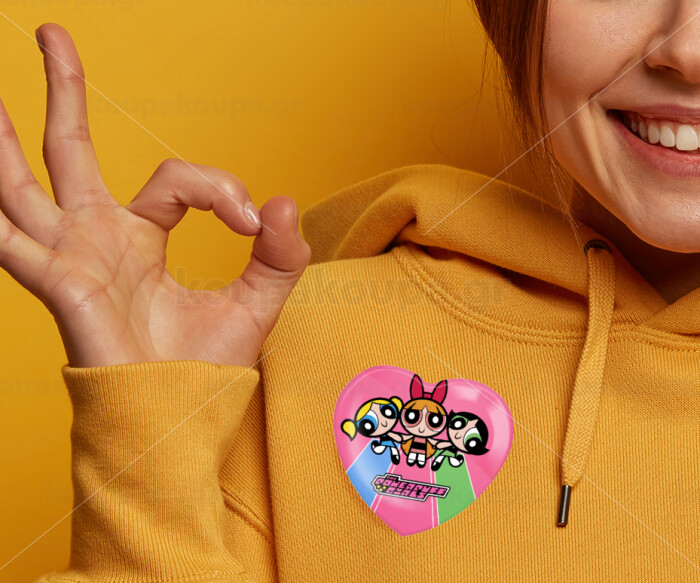 The powerpuff girls , Κονκάρδα παραμάνα καρδιά (57x52mm)