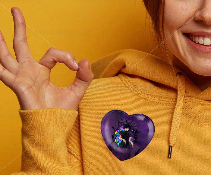 Wednesday Jenna Ortega, Κονκάρδα παραμάνα καρδιά (57x52mm)