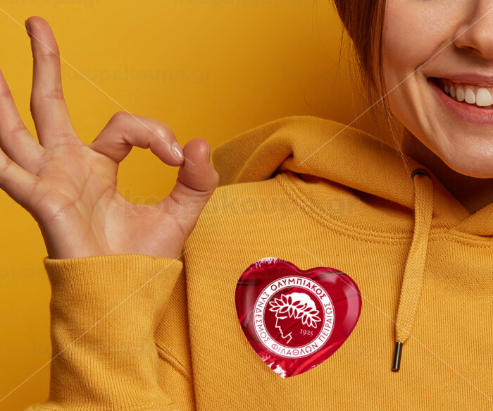 Olympiacos F.C., Κονκάρδα παραμάνα καρδιά (57x52mm)