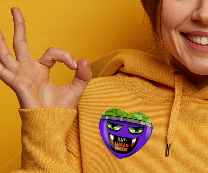 Halloween trick or treat Monster, Κονκάρδα παραμάνα καρδιά (57x52mm)