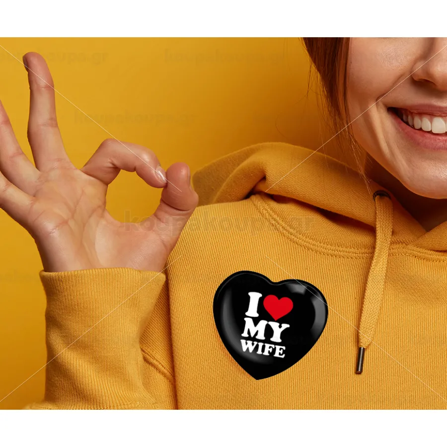 I Love my Wife, Κονκάρδα παραμάνα καρδιά (57x52mm)