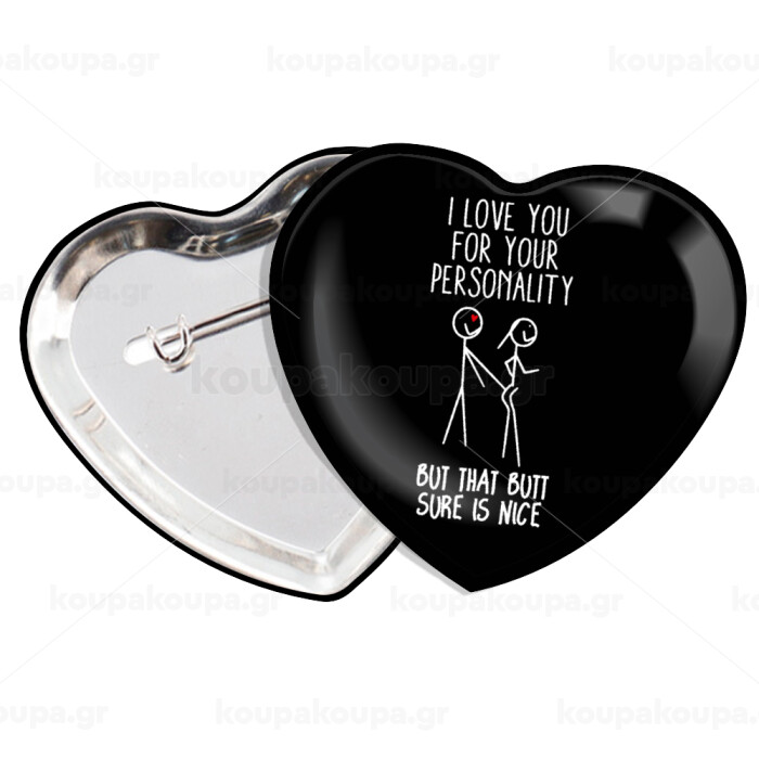 I Love you for your personality, Κονκάρδα παραμάνα καρδιά (57x52mm)