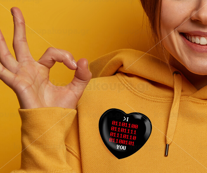 I .... YOU, binary secret MSG, Κονκάρδα παραμάνα καρδιά (57x52mm)