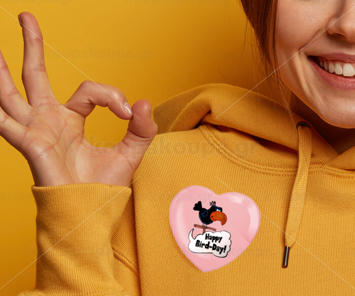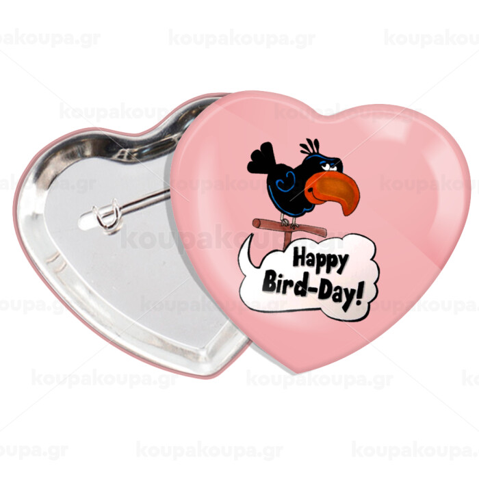 Happy Bird Day, Κονκάρδα παραμάνα καρδιά (57x52mm)