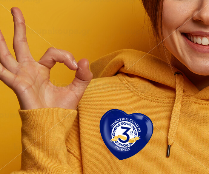 Έμβλημα Σχολικό μπλε, Κονκάρδα παραμάνα καρδιά (57x52mm)