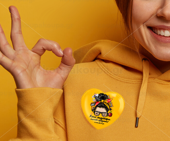 Στην καλύτερη συνοδό σχολικού!, Κονκάρδα παραμάνα καρδιά (57x52mm)